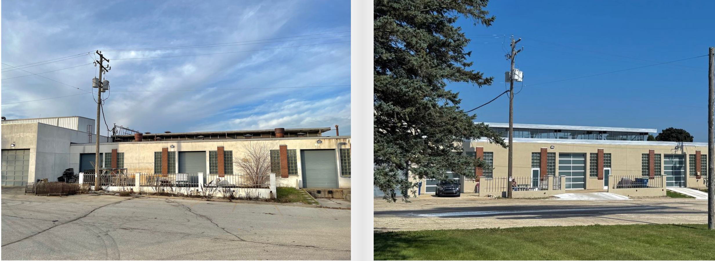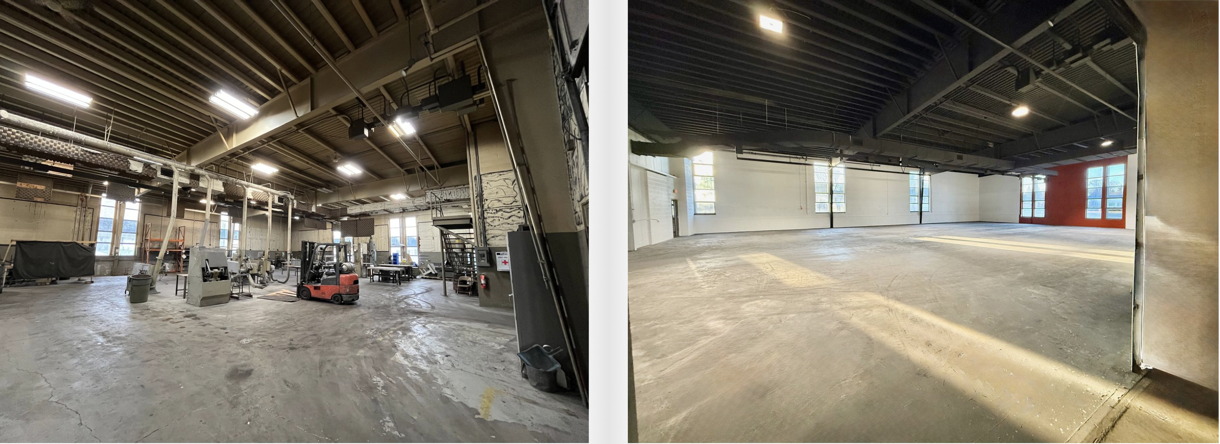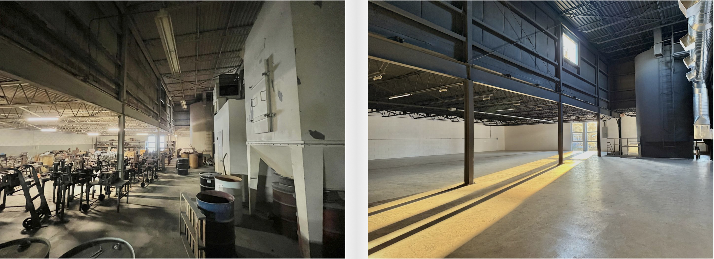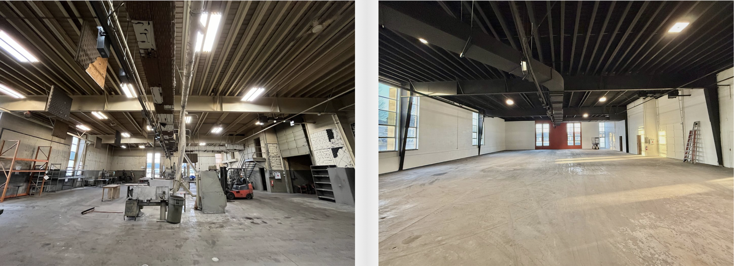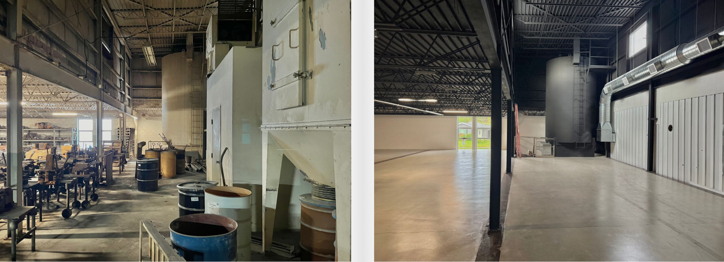 Goldfinger specializes in the preservation and adaptive re-use of aging structures. While we’ve done many projects over the past 20 years, our largest (and most recent) example can be seen at Goldfinger Studios -- a series of dramatic commercial condos born from a mid-century modern, 35,000 square foot former aluminum casting foundry in Grafton. We closed on this property in August of 2024, and are excited about the progress we've made. Check out our gallery of “Before & After” pictures below.